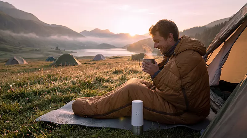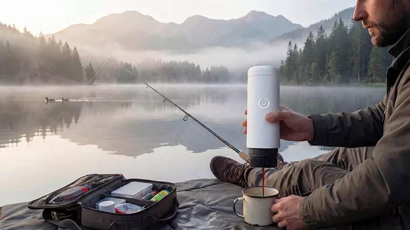 "Wake up to wilderness, not weak coffee. Hot espresso in 42 seconds — no campfire needed"